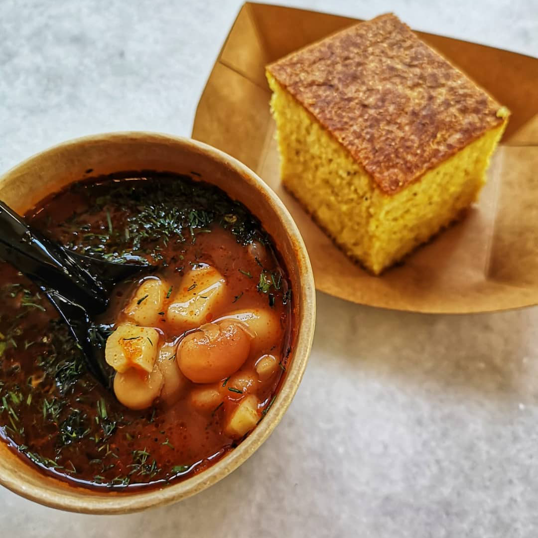 Ciorbă de fasole cu pită de mălai (350 g/120g)